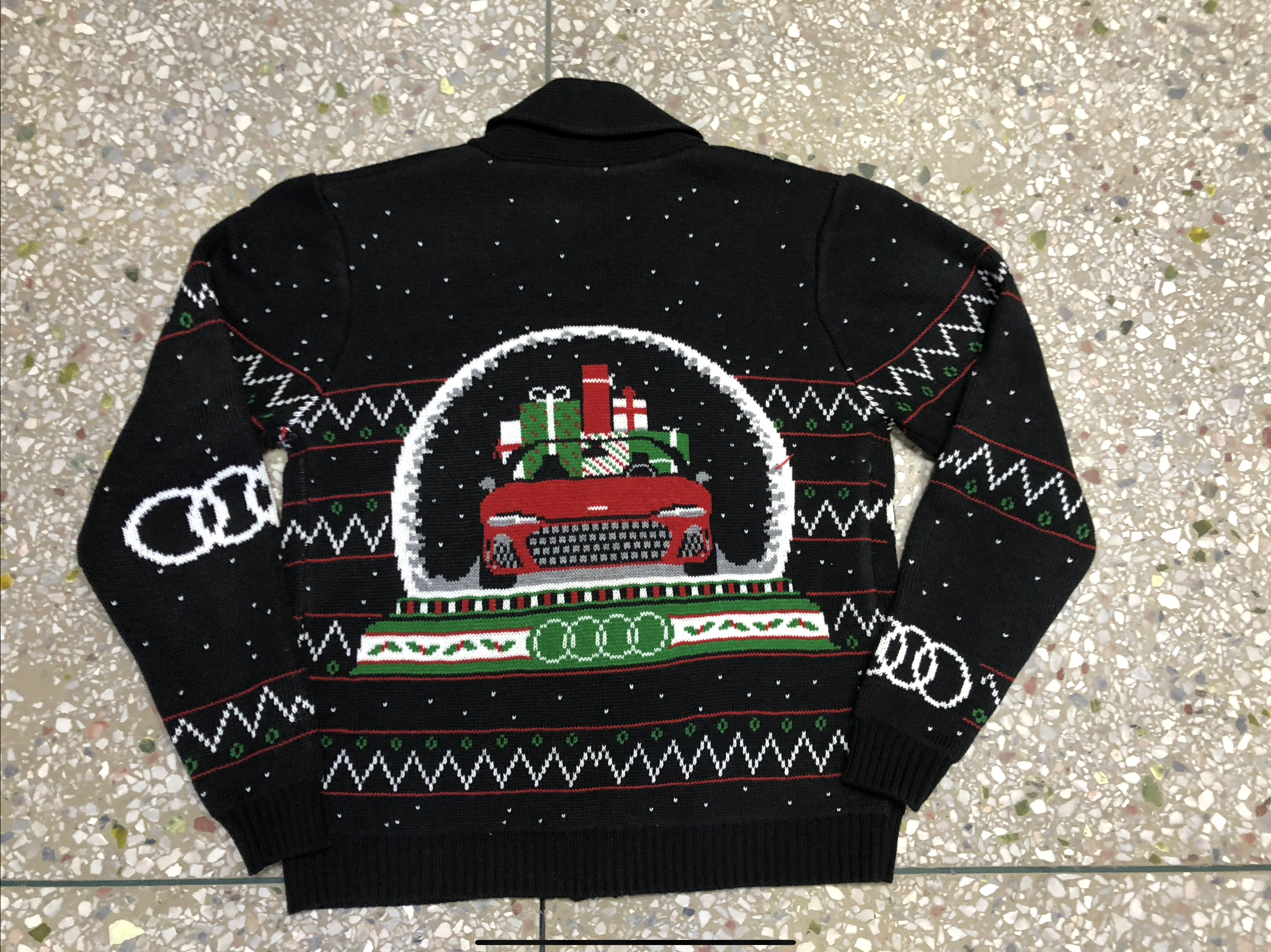 Audi loved the cardigan. It matched their annual Christmas sweaters and as it was a limited edition piece, it made a great and special gifts for their lucky customers and clients.