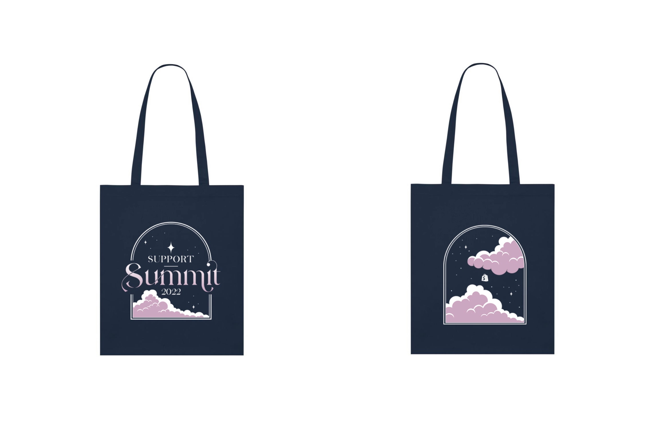 Shopify wanted a number of different merch options and they wanted premium and sustainable items used for the event. Two of the most popular items were the custom hoodies and custom tote bags. Making the custom swag was fun as there were a lot of playful elements to the design and the color was a beautiful light pink. The bags were made using 100% organic material and the hoodies were a combed cotton.