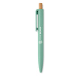 Ball pen in recycled ABS with bamboo push button. Blue ink.