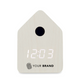 Small MDF desk clock including a built-in alarm with bird cuckoo voice and temperature display. Bird cuckoo voice every full hour and during alarm. White LED display. Sound is automatically silenced between 22.00h to 06.00h. 5 mins snooze intervals