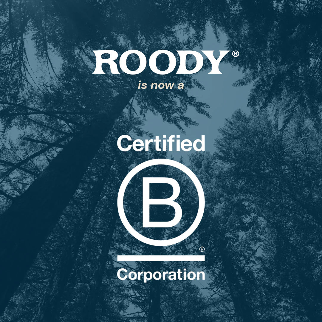 Roody is a certified B Corp. B Corp Certification is a designation that a business is meeting high standards of verified performance, accountability, and transparency on factors from employee benefits and charitable giving to supply chain practices and input materials.